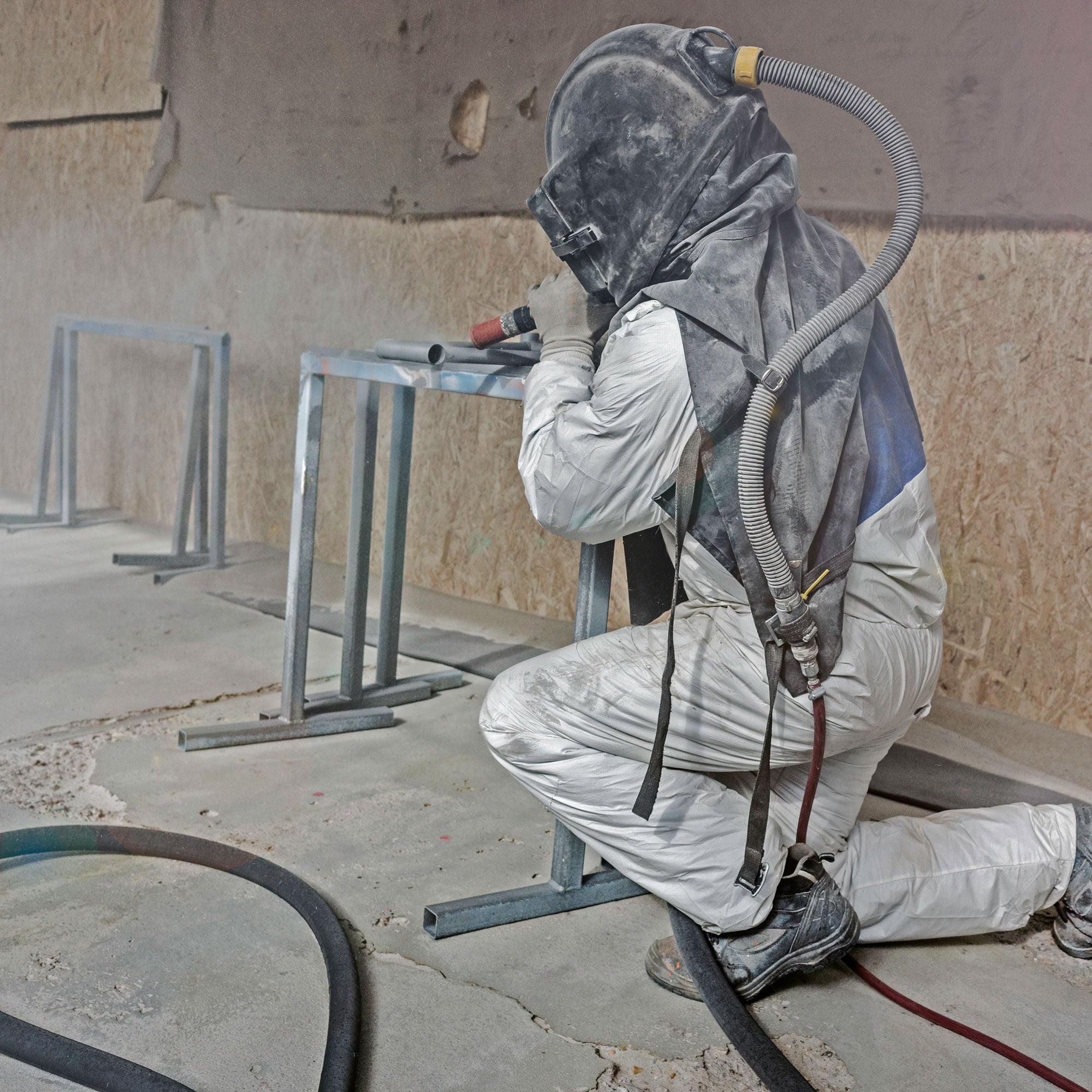 Durch vorausgehendes Sandstrahlen der Metalle wird die Haltbarkeit der Pulverbeschichtung erhöht.