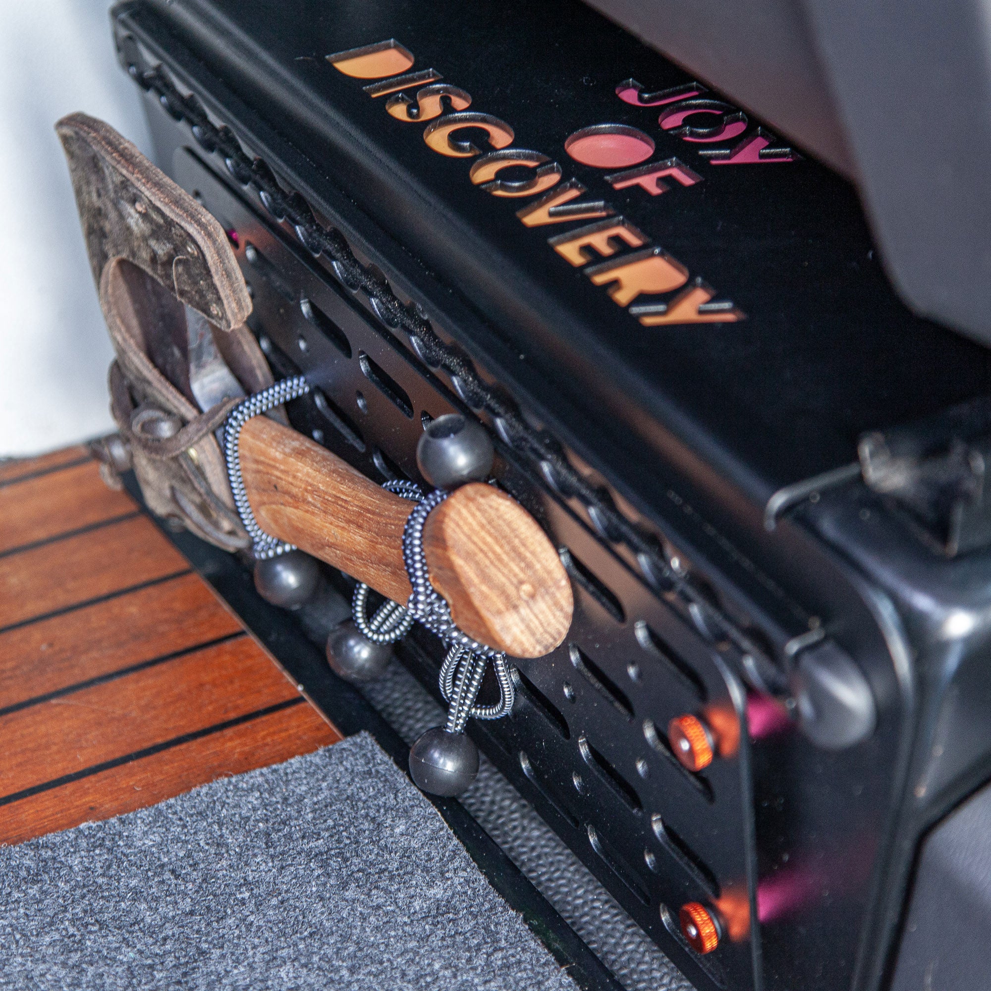 Mit unserer Premium-Sitzkonsolenverkleidung aus Aluminium holst du dir nicht nur eine robuste und langlebige Abdeckung für deinen VW California, Multivan, Caravelle oder Transporter, sondern auch eine clevere Möglichkeit, deine Ausrüstung sicher und organisiert zu verstauen. Dank des integrierten Molle Panels kannst du alles, was du unterwegs brauchst, problemlos befestigen – von kleinen Taschen bis hin zu Werkzeugen.