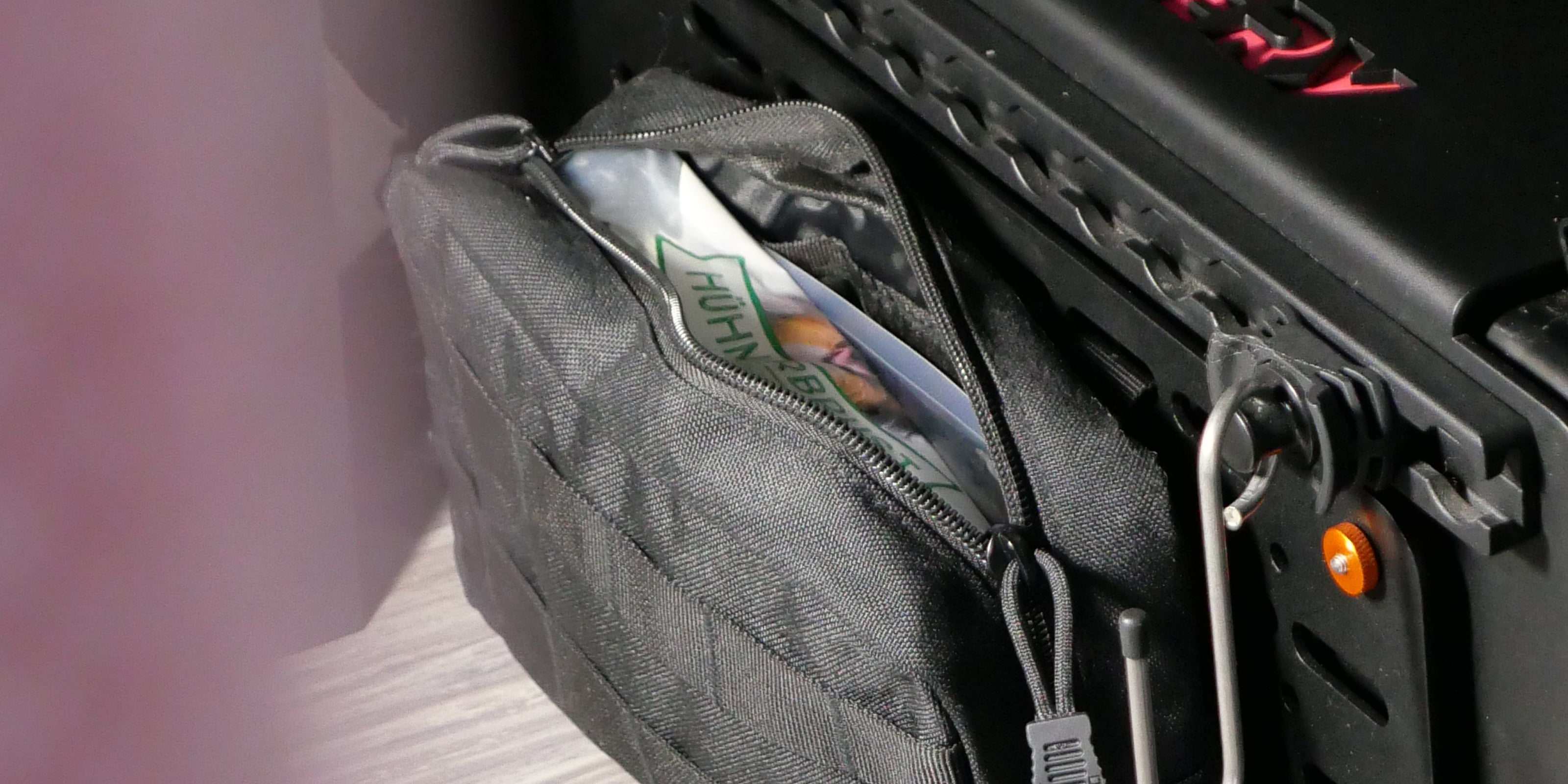 🔸 Flexible Organizer-Zone mit MOLLE Raster für Taschen, Gear und Tools
